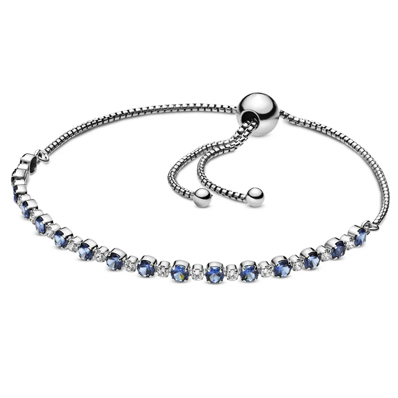 Браслет-слайдер из серебра 100% пробы, с розовыми, голубыми и прозрачными блестками