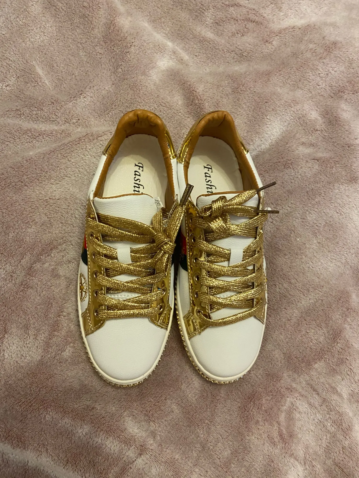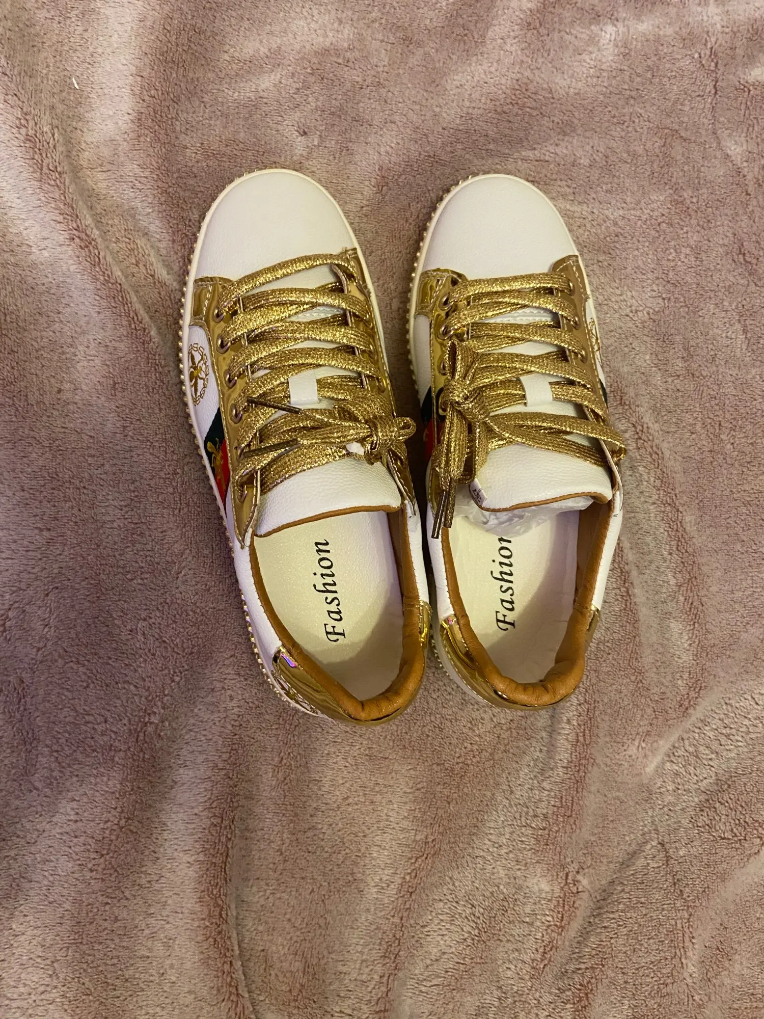Модные блестящие мужские кроссовки с золотой вышивкой