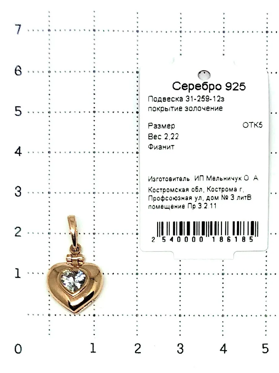 Подвеска Мощевик православная "Сердце" SamoroDki Jewelry Серебро 925 пробы, покрытие родий и золочение