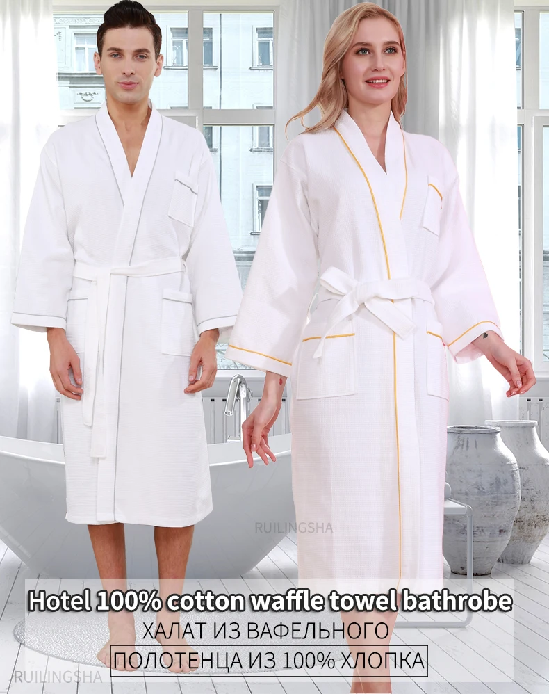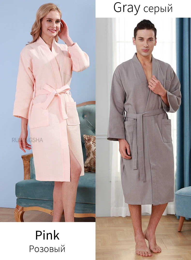 40-110 кг для женщин 100% хлопок кимоно Вафельное полотенце банный халат сосать воды махровый Халат длинный халат размера плюс для мужчин, одежда для сна