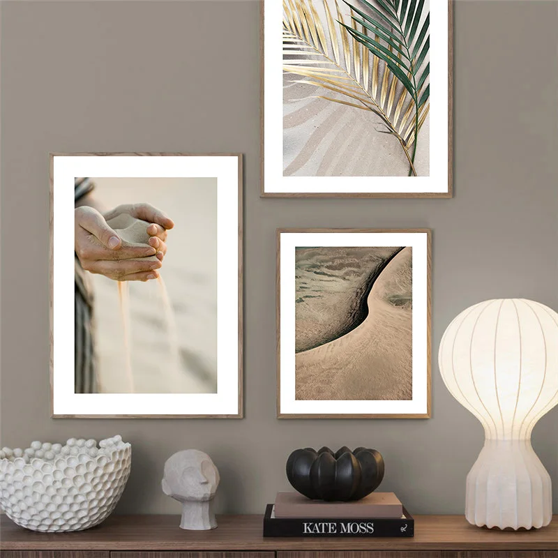 Скандинавский песок морской пейзаж, настенное искусство, Золотая пальма, листья, искусство на холсте, ботаническая картина, искусство, украшение для дома и комнаты