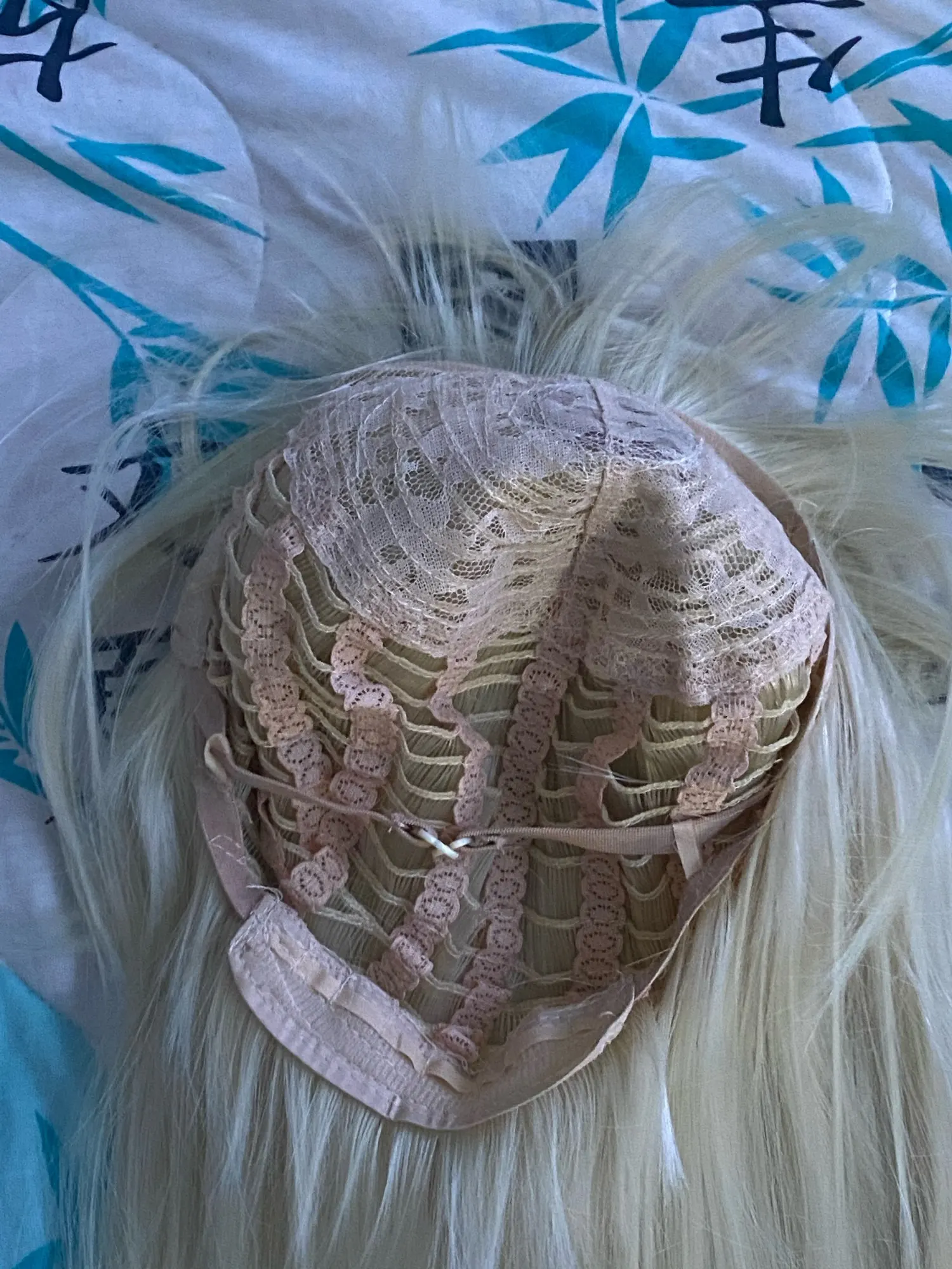 La perruque et toute douce et longue j’ai eu une wig cap avec , les cheveux sont un peux embêtant à démêler mais sinon parfait