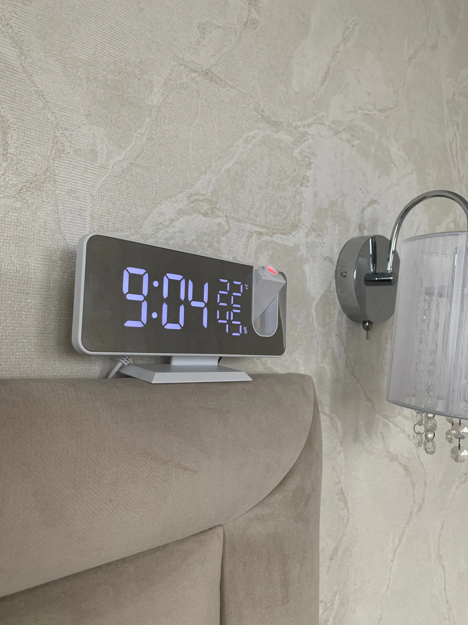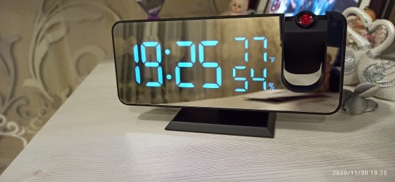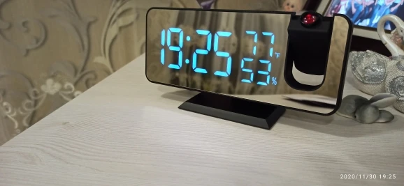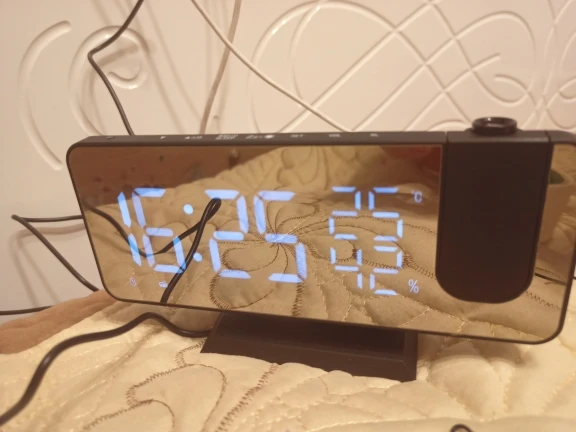 Часы красивые, яркость дисплея, а так же проекции регулируется по риелтерский ступенчато. Как часы очень хороши, но для меня оказалось более ценно проекция на потолок. Не яркая и ночью не отвлекающая. Минус: работает от кабеля usb. Батарейка которая внутри только для сохранения времени если кабель отключился. Другой ниши для батареи нет. Товар и продавца рекомендую