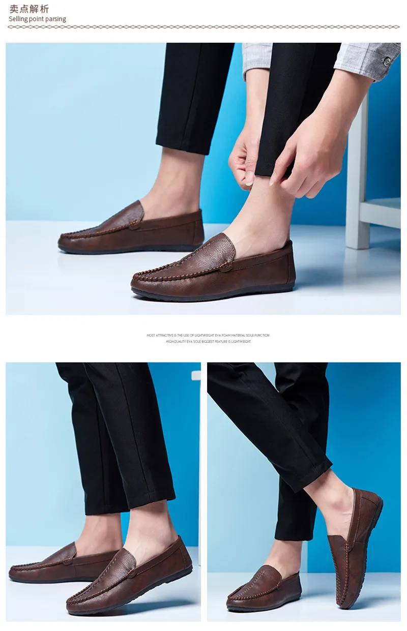 Мокасины мужские из ПУ кожи, Итальянские кроссовки, Повседневная дышащая обувь для вождения, без застежки, лоферы, плоская подошва, 2020