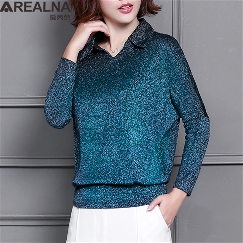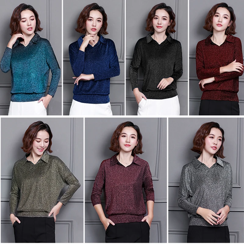 Женские блестящие топы и блузки с люрексом, блузка с длинным рукаво...