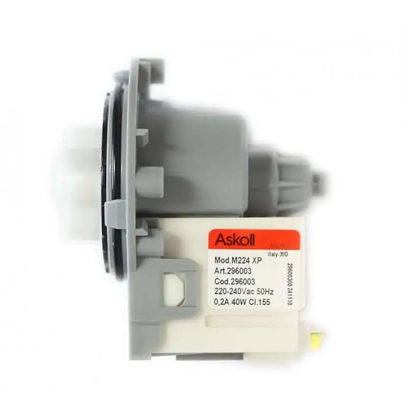 Сливной насос Askoll 0,04 кВт. Удаляет использованную воду из стиральной машинки. Также называется дренажный насос, насос слива, помпа аскол.296003, модель М224 XP, 116282, 142846Замена для Model M19, M47, M110, M224 XP, M231 XP, M259, WP3125Медная обмотка.Без улитки.Крепление осуществляется с помощью трех винтов.Клеммы расположены раздельно.Замена: P202, P006, P500.Подходит для стиральных машин Electrolux, Zanussi, Candy, Whirlpool, Samsung, Bosch, LG, AEG, Indesit, Ariston (см. модели ниже)Коды Zanussi 1240794204, 1249206226; Electrolux 1326630207, 1242529400, 1290373503, 1468818008, 1460573205, 1260611502, 1322763010, 1322037316, 1322037118, 50286281006.Коды производителя 296005, 49016211 1.47.029.30Оригинальный код насоса для стиральной машины Candy: 49002228, 91941771, 41005956, 41005959, 41005957, 41005956, 91941771 Устанавливают вместо насоса Plaset SRL Cod. 48986.Whirlpool 481236018577, 481236018529, 481288818082Циркуляционный насос производство Италия.Коды: 290396 DC31-30008D 1.47.000.10 14700010 63AB912, 147000100, Art. 296005, Type. M105, Cod. 292272 292232, Cod. 49016211 C00144998 63AB912_old, 63AB912_new 144997 1600037 RC002000 AV5407.Коды для Askoll Type. M116, Askoll M19, Askoll M47, Askoll M105, Askoll M116 и Plaset Cod 49896 Ascoll. 518002500 651016183 485100301004 OAC144997 480181701068 481281729514.Замена этой помпы: OAC283277 OAC142846.Коды замен Indesit 044998, 061868, 056835, 085617, 119307, 092264.Замена этой помпы от Artiko: 63AB512 и 10ma50, 63AK502.,зам. 518007601 OAC144997, (з.63AB913), 1240310019 220-240Vac 296037 PMP000UN C00144997 292347 292228 292347.Замена для Hanning DPO25-244 30WIndesit: C00144997,C00144998; Samsung: DC31-00030A, DC97-15696A, DC31-30001A, DC31-30008D, DC31-00056A, DC31-00057A; LG: 4681EA2002B, 4681EA2001A.