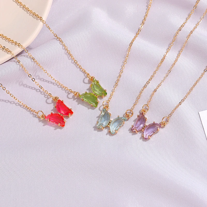 Kpop 2022, модное цветное ожерелье с бабочкой, 8 цветов, Блестящая бабочка с кристаллами, очаровательный подарок, женская мода, милые украшения в виде насекомых