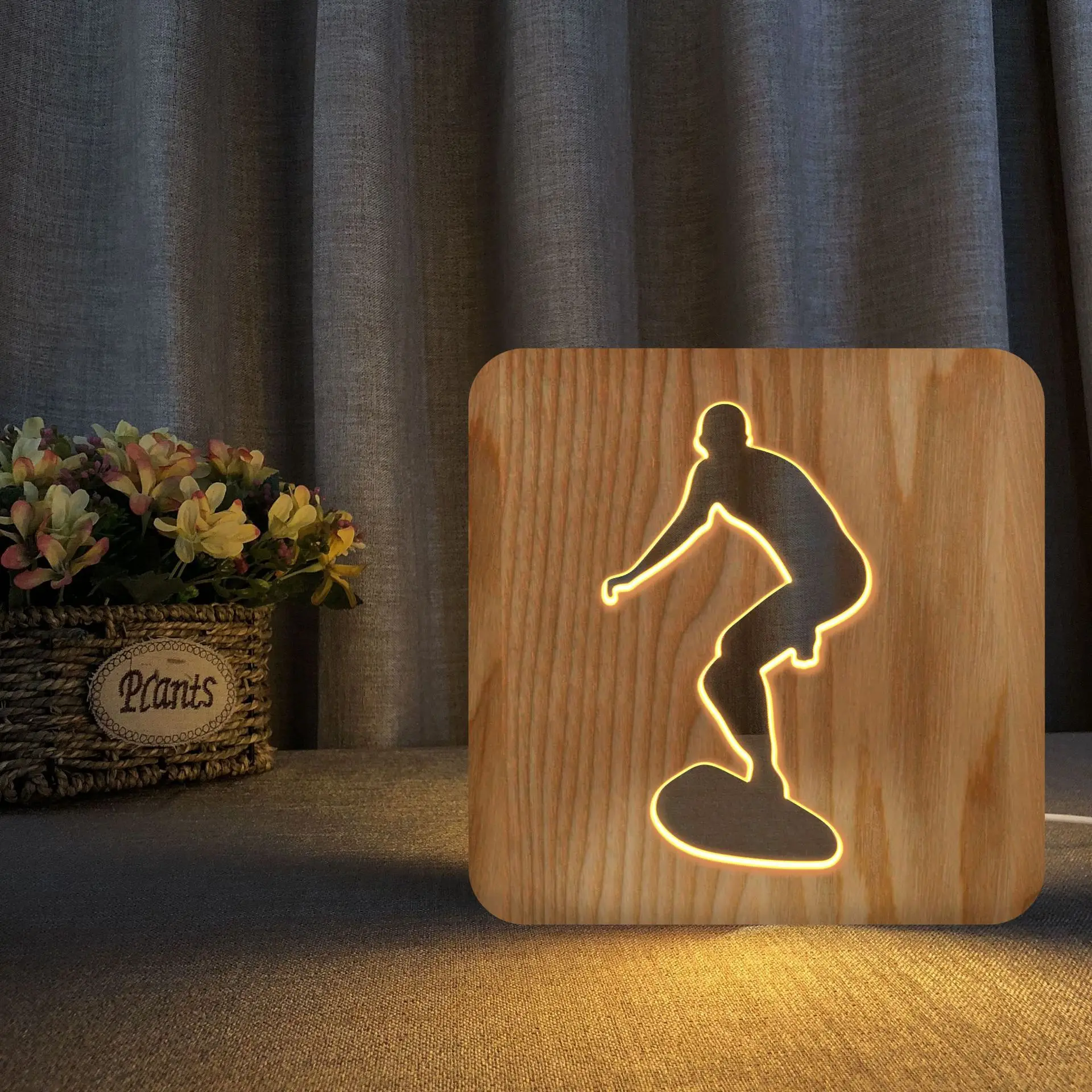 Спортивная 3d деревянная лампа для серфинга, деревянные поделки, светодиодная настольная лампа для детей, прикроватный ночник, украшение для спальни, лучший подарок
