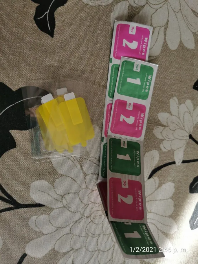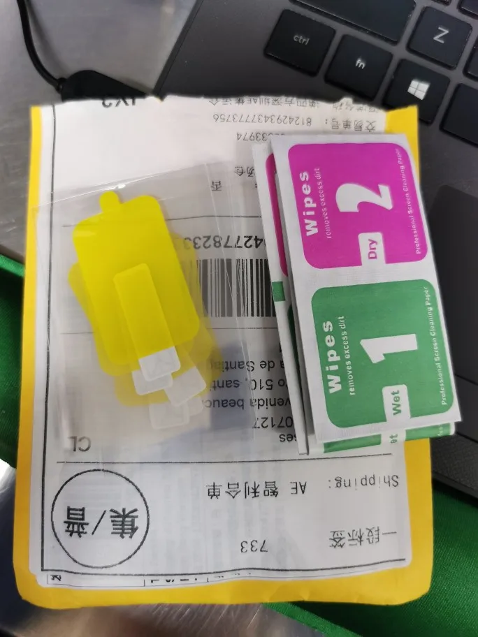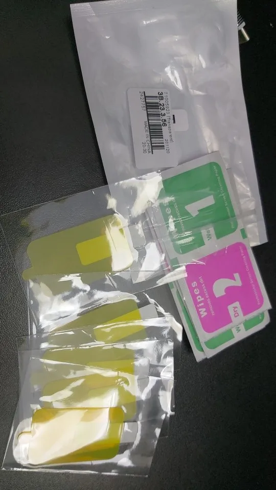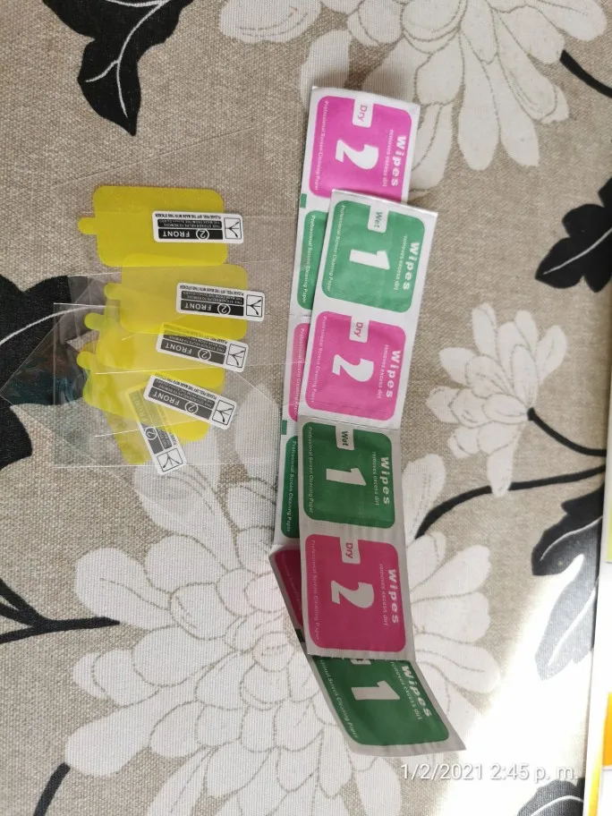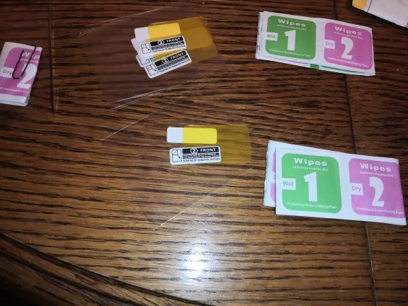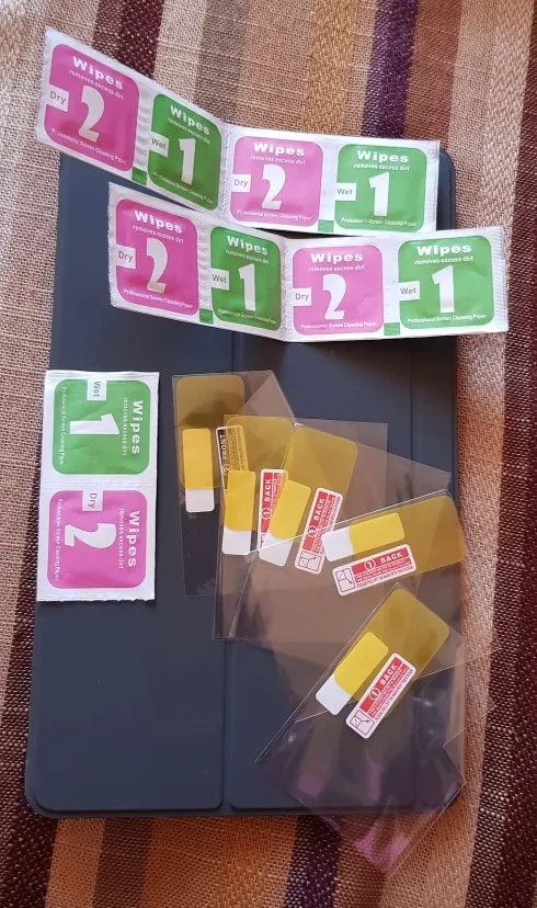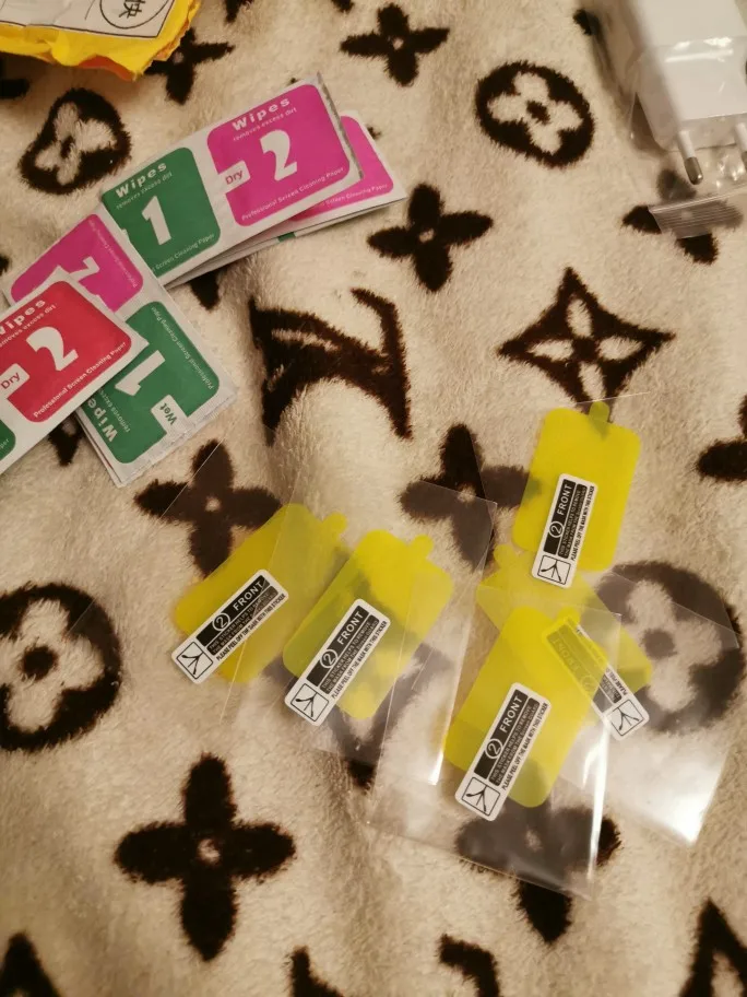 Доставка 3 недели. В комплекте 5 плёнок и 5 салфеток для обработки. Сами плёнки норм, с первого раза приклеить не получилось