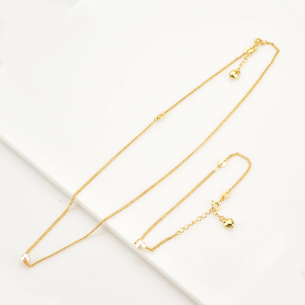 Цепочка с подвеской из серебра 925 пробы с пресноводным жемчугом