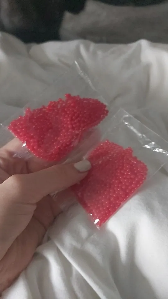 Это было потрясающе! Бусины Действительно классные, они очень большие! Я немного беспокоился, потому что они были ~ это ~ дешево, но честно говоря, они невероятные! Я купил 4 упаковки (?) у этого продавца, и все было точно так же, как описано. Эти действительно прозрачные! Когда вы положите их в воду, они почти невидимы!: D он прибыл немного позже, чем расчетное время, но ничего слишком плохого. На этой картинке они под синими. 100% рекомендуем этот продавец