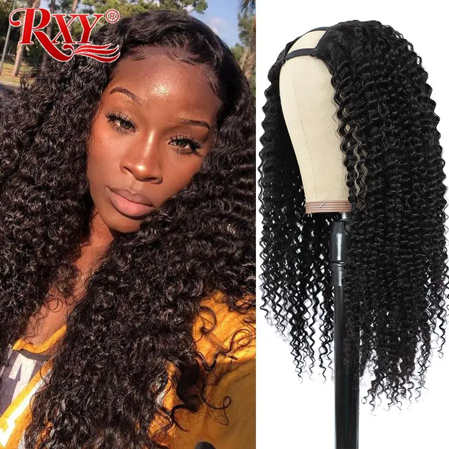 RXY U Part парик без клея человеческие волосы парики бразильские Remy волосы афро кудрявые человеческие волосы парик естественная линия волос можно завивать и окрашивать