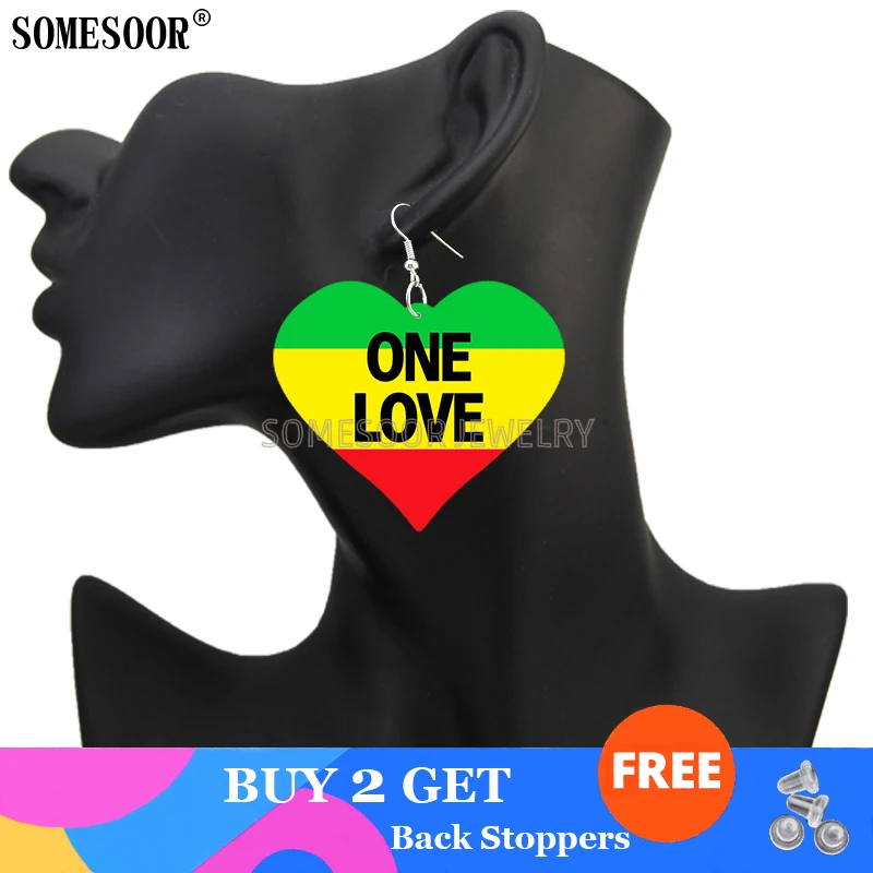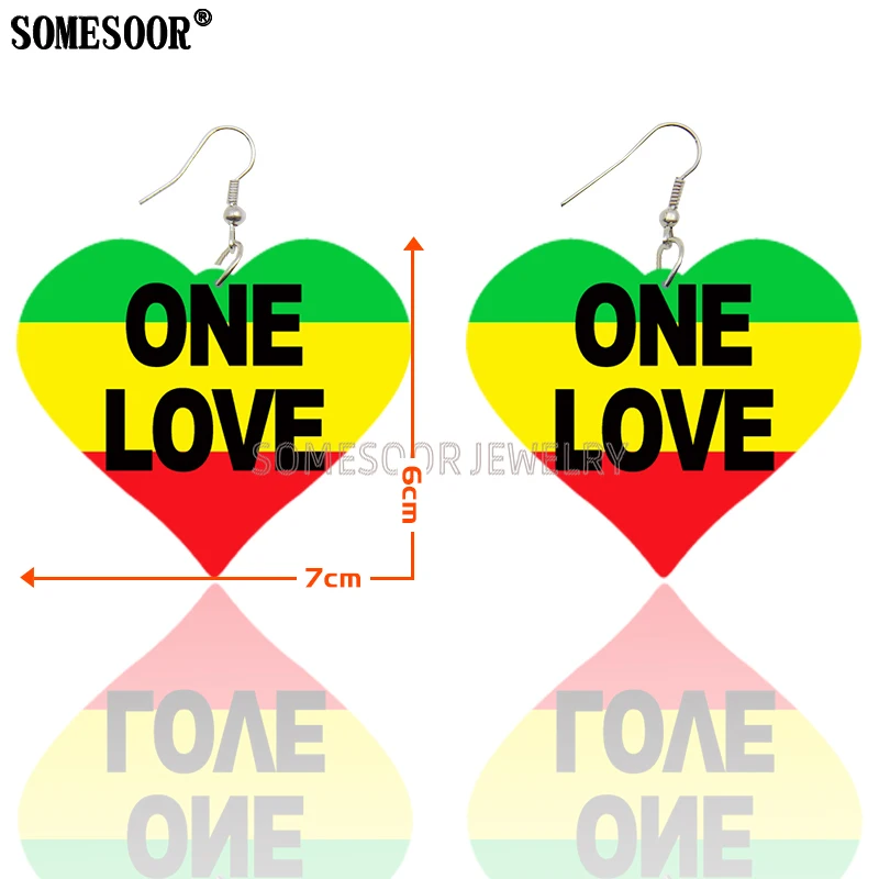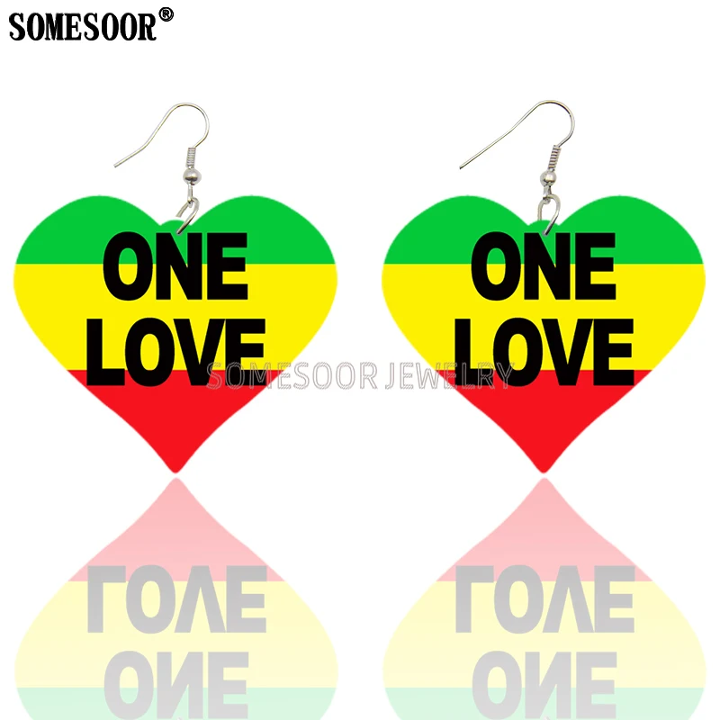 SOMESOOR 3 цвета полосы ONE LOVE слоган деревянные с обеих сторон печать в форме сердца Висячие серьги для женщин Подарки
