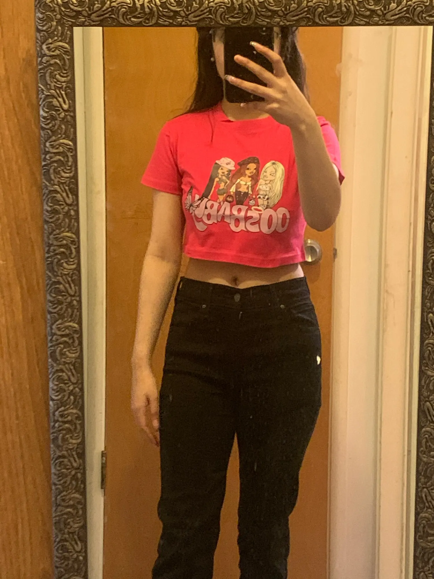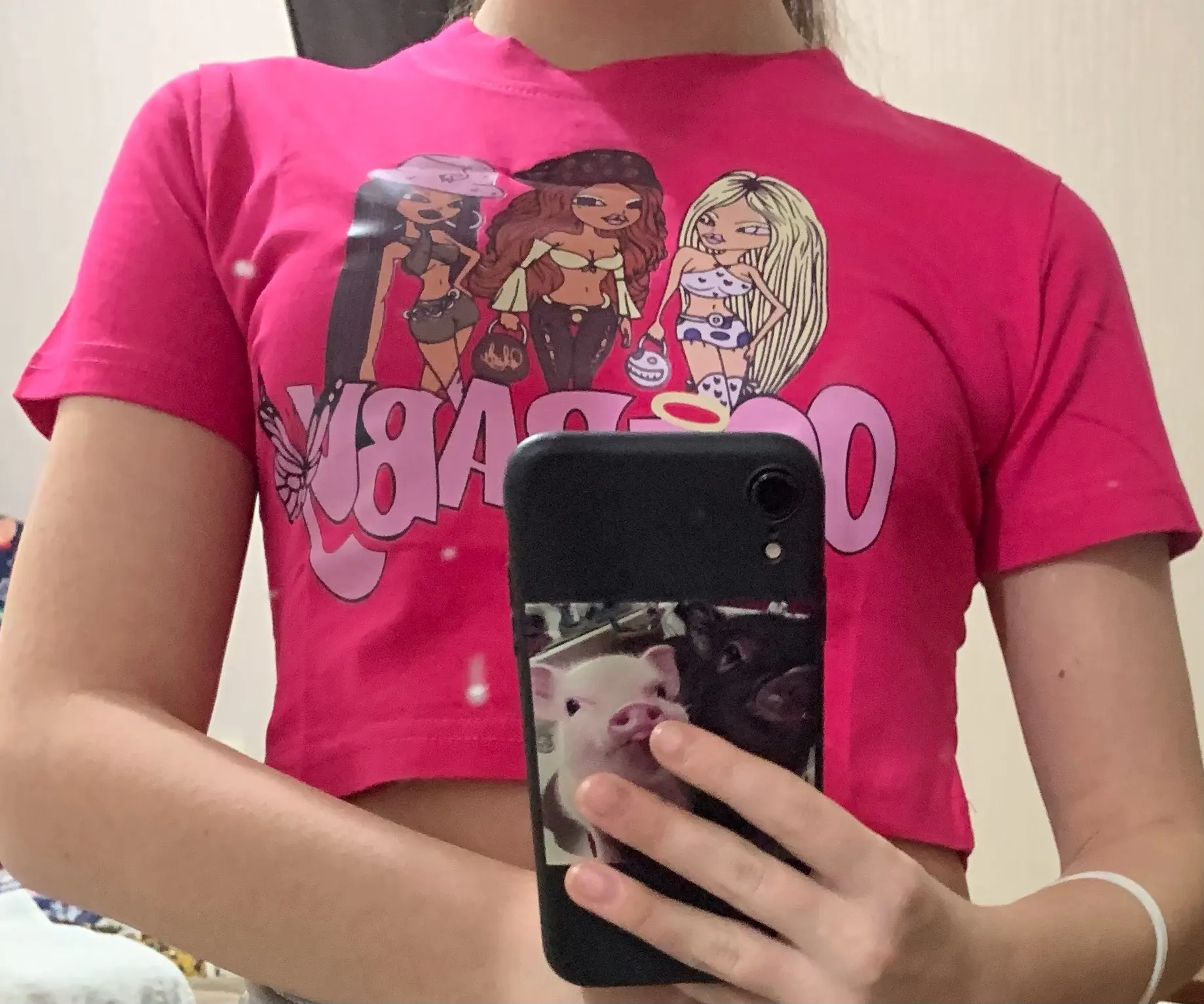 хороший кроп, но мне он слишком короткий, качество неплохое, принт наклейка 8/10