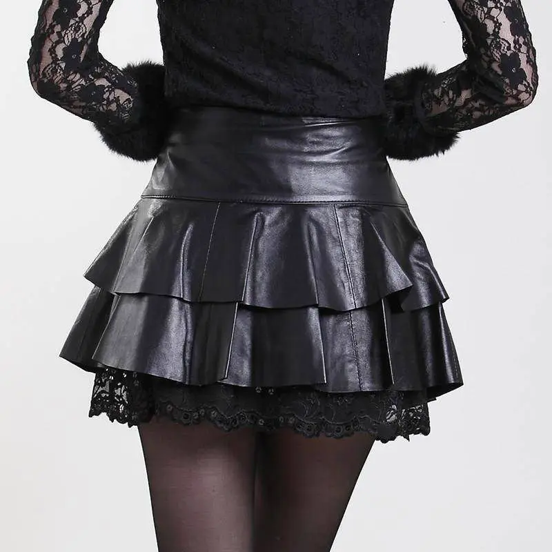 Юбка женская из искусственной кожи, короткая кожаная юбка-баллон, большие размеры, Осень-зима 2020