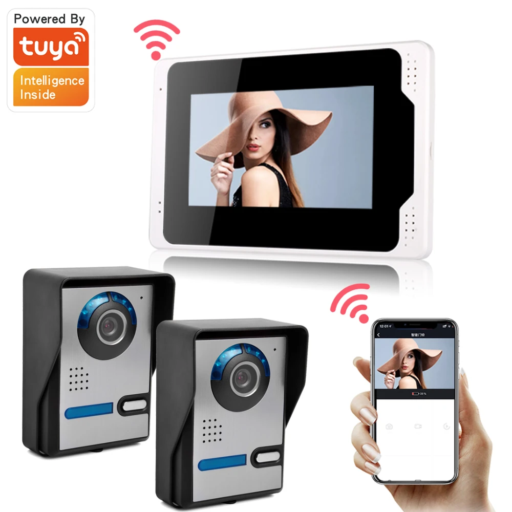 Приложение Tuya, 7 дюймов, проводной/беспроводной Wifi, ip-видео телефон, дверной звонок, домофон, система входа с проводной камерой 1080, ночное видение, поддержка удаленного приложения, разблокировка, запись, снимок