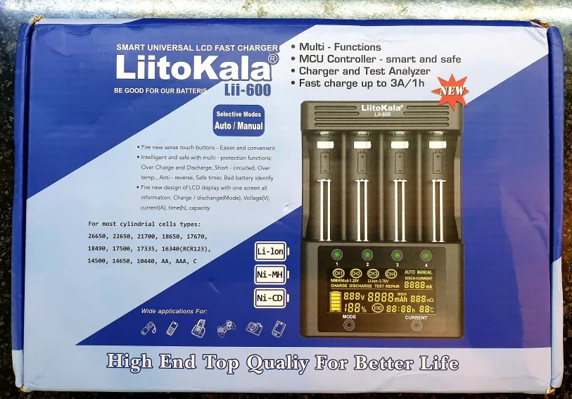 Lii-600 кажется хорошим обновлением на Lii-500, он немного больше (поддерживает большие ячейки), использует сенсорные кнопки и имеет более приятный экран, но в противном случае должен быть очень знаком с тем, кто использовал Lii-500.