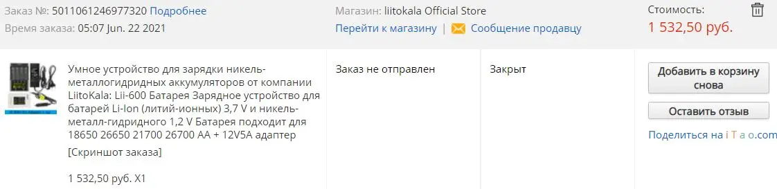 зарядное устройство купил по акции 1500 руб., оплатил и стал ждать. ускоренная доставка все такое, через неделю узнаю -ваш заказ отменён, деньги вернули, если хотите закажите заново за 3700-. какой-то развод. не рекомендую этот магазин.
