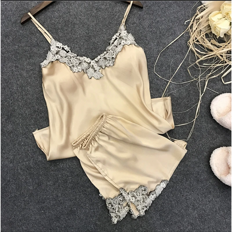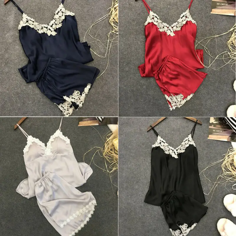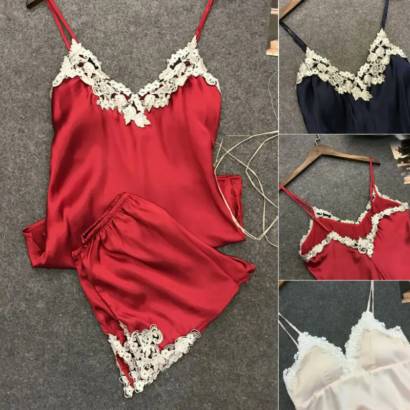 Горячее однотонное кружевное женское сексуальное белье с низкой талией, шелковое атласное кружевное платье, шорты, одежда для сна, комбинация, ночная рубашка, пижамы, 2 шт.компл.