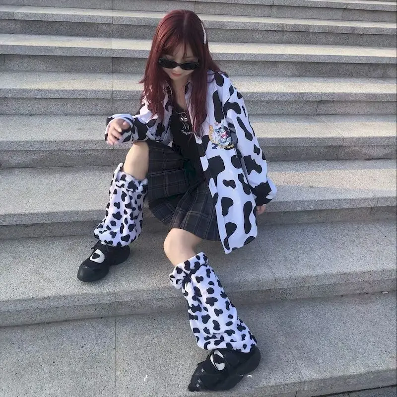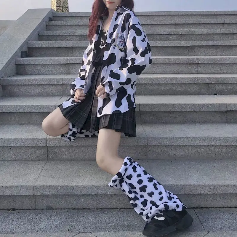Японские в форме трубы носки, с коровьим узором, наколенники, ворс носков, стиль Harajuku, JK икры рукава, Лолита, мягкая сестра, модный студент,