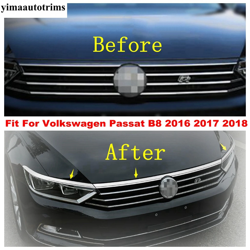 Автомобильные аксессуары, декоративная полоса Переднего Капота двигателя, Накладка для Volkswagen Passat B8 2016 2017 2018, комплект для внешней части из нержавеющей стали