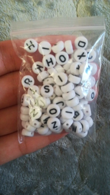 бусинки классные, да. но есть буквы, которые отсутствуют. тип каких-то 7штук, а других хер... /стеним чана/