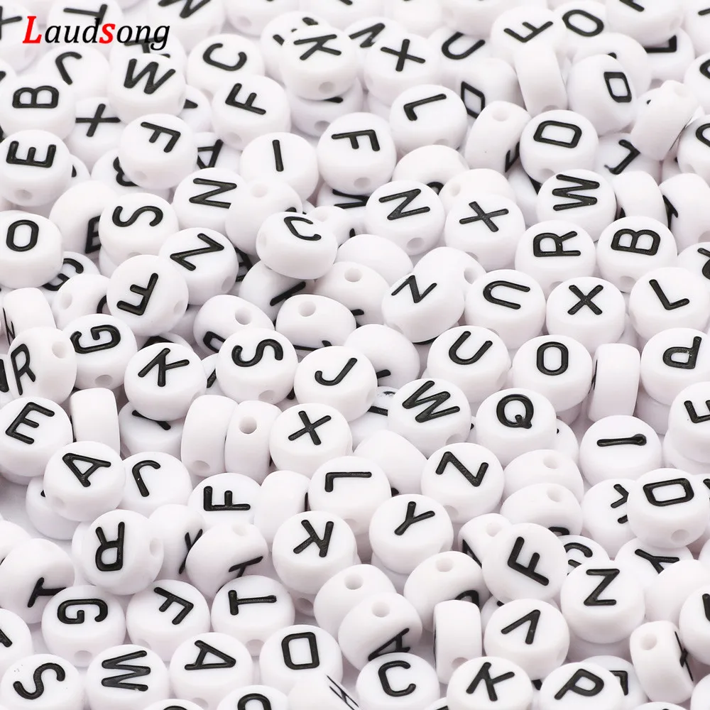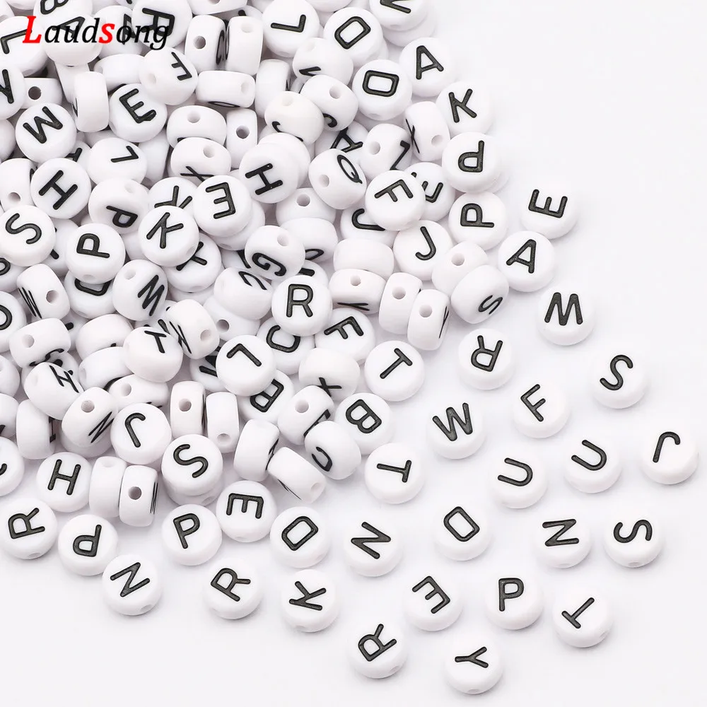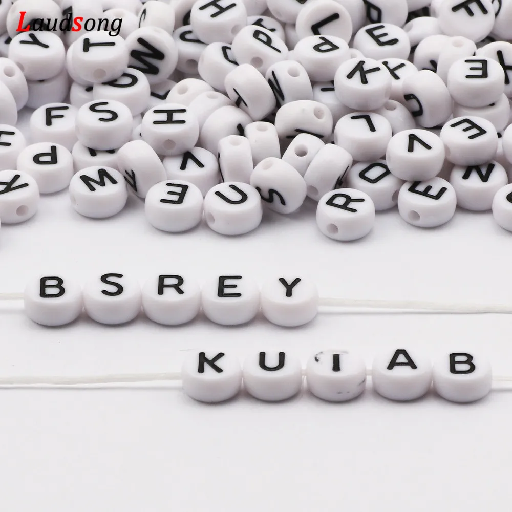 Бусины-разделители для ювелирных изделий, черные, белые, 7 мм