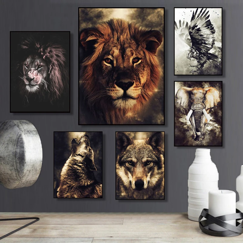 Настенная картина с акварелью, волк, Лев, Орлан, слон, настенные ка...
