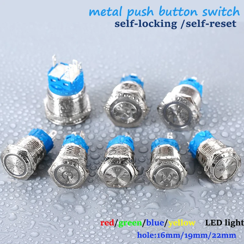 Металлический кнопочный переключатель 16 мм, кольцевая кнопка для лампы, кнопка символа питания, водонепроницаемая светодиодсветильник самоблокирующаяся Кнопка самосброса 1NO1NC