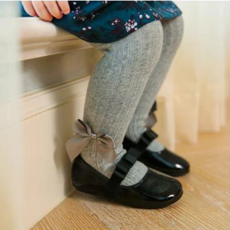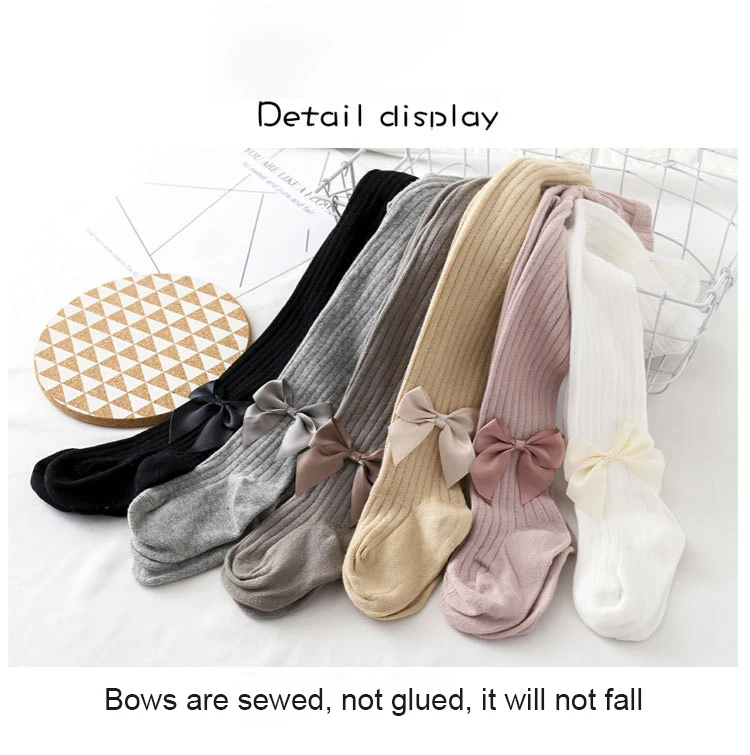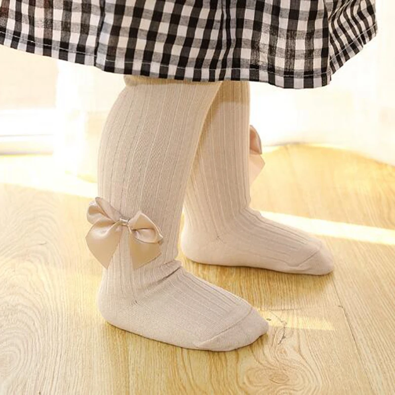 Колготки для девочек, хлопковые, в рубчик, с бантом, весна-осень-зима, От 0 до 8 лет