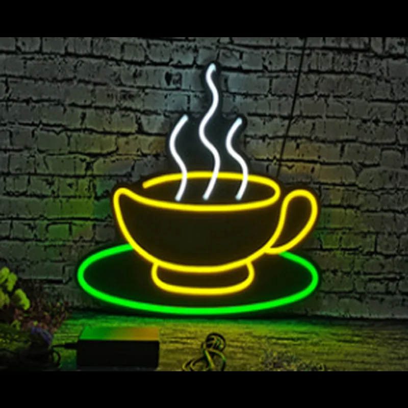 Пользовательсветодиодный ные чашки для кофе неосветильник вывеска LED Кафе Магазин крытый неоновый бизнес рекламные вывески