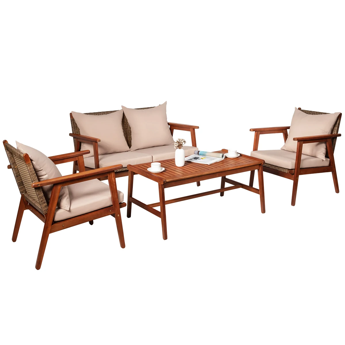 8 шт патио ротанга мебель набор акации деревянная рамка Мягкая диван стул сад 2 * HW66517 +