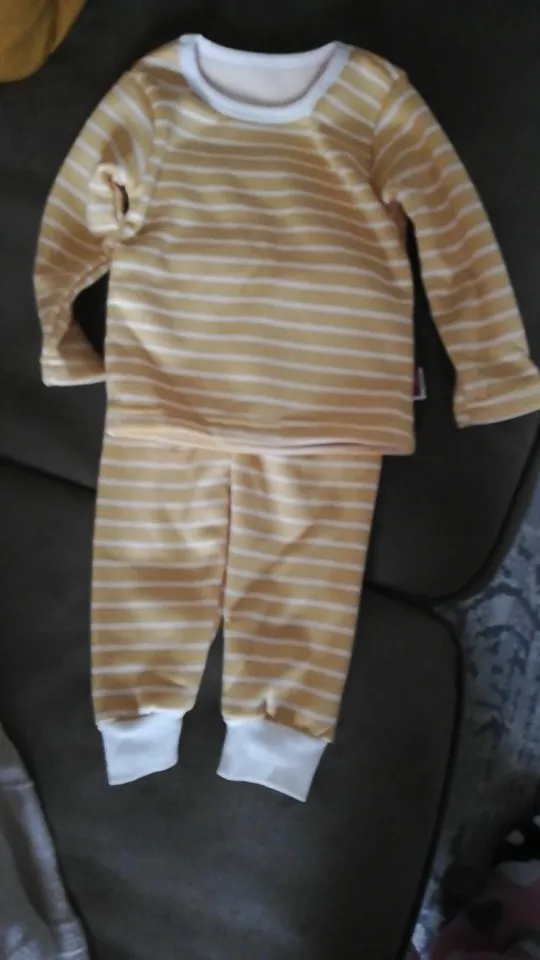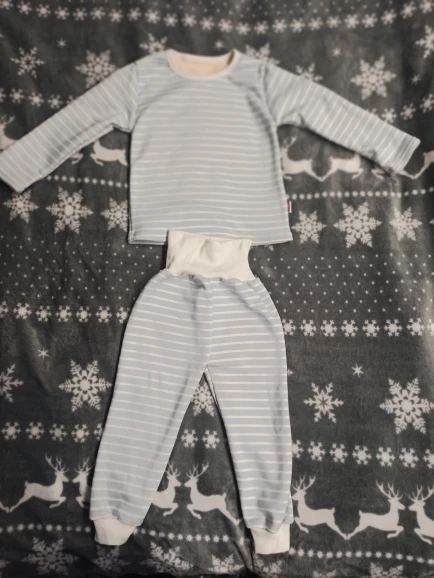 Хорошая теплая пижамка. Почитав отзывы, взяла 4t (110 см) на рост 86 см. Штаны норм, кофта великовата, но для пижамы не критично. Длина штанов - 55 см, кофты - 39 см, длина рукава - 28 см, полуобхват груди - 30 см. После 6 стирок начинают появляться катышки. Доставка быстрая, около 1,5 недель. Правда отправляли долговато.
