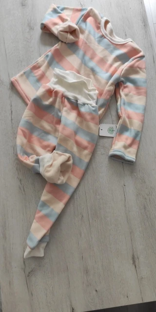костюм супер мягкий и очень приятный. ребенку 11 месяцев. я заказывала размер на вырост 18м. подошел очень хорошо сейчас. может совсем чуток больше. в 12 месяцев будет идеально. но в 18 будет точно мал. видимо маломерят. закажу еще такой, но побольше. качество супер!