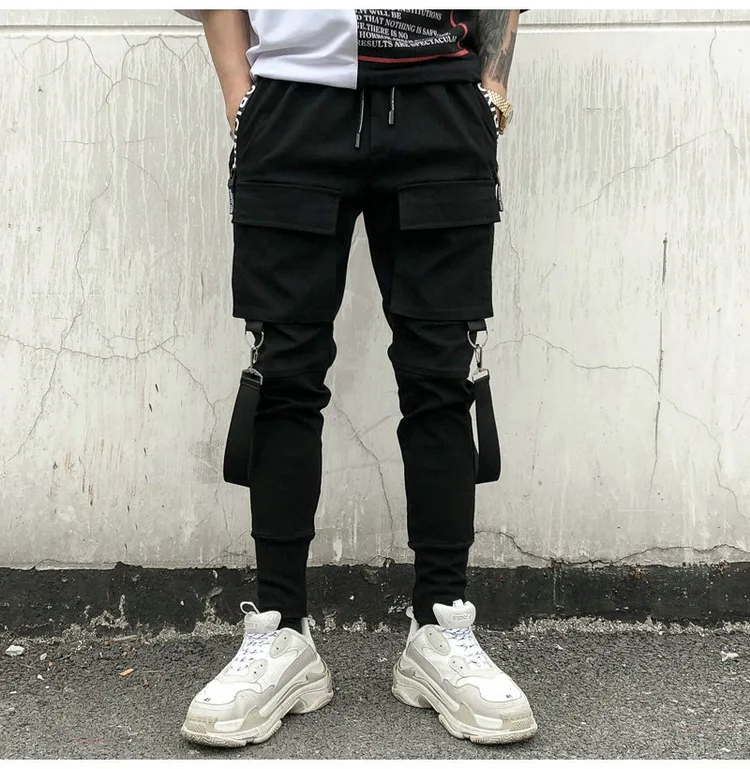 Брюки мужские спортивные, джоггеры, брюки-султанки со множеством карманов, брюки-карандаш, черные, 2021