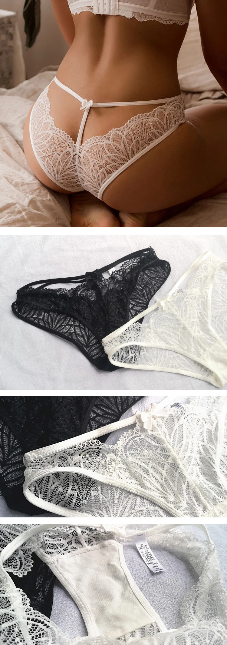 Женские сексуальные кружевные трусики, черные и белые кружевные тру...