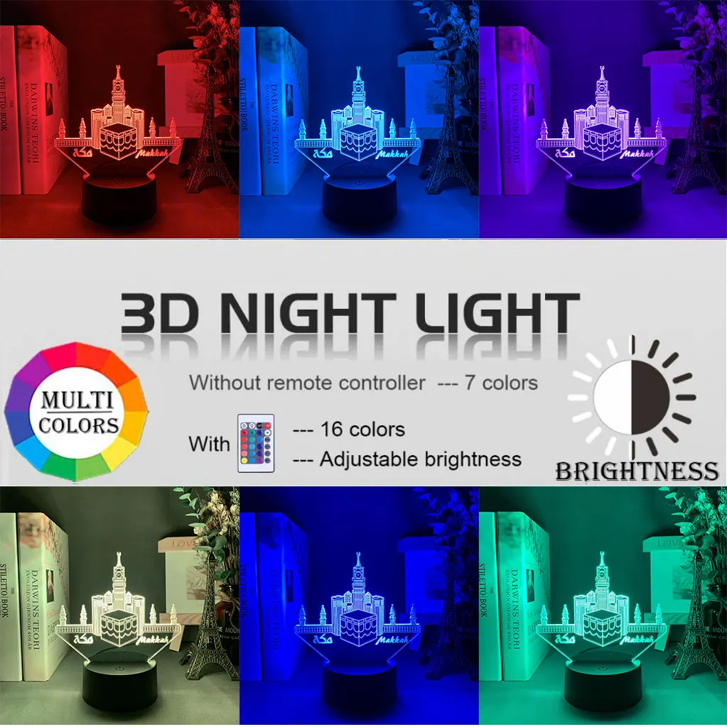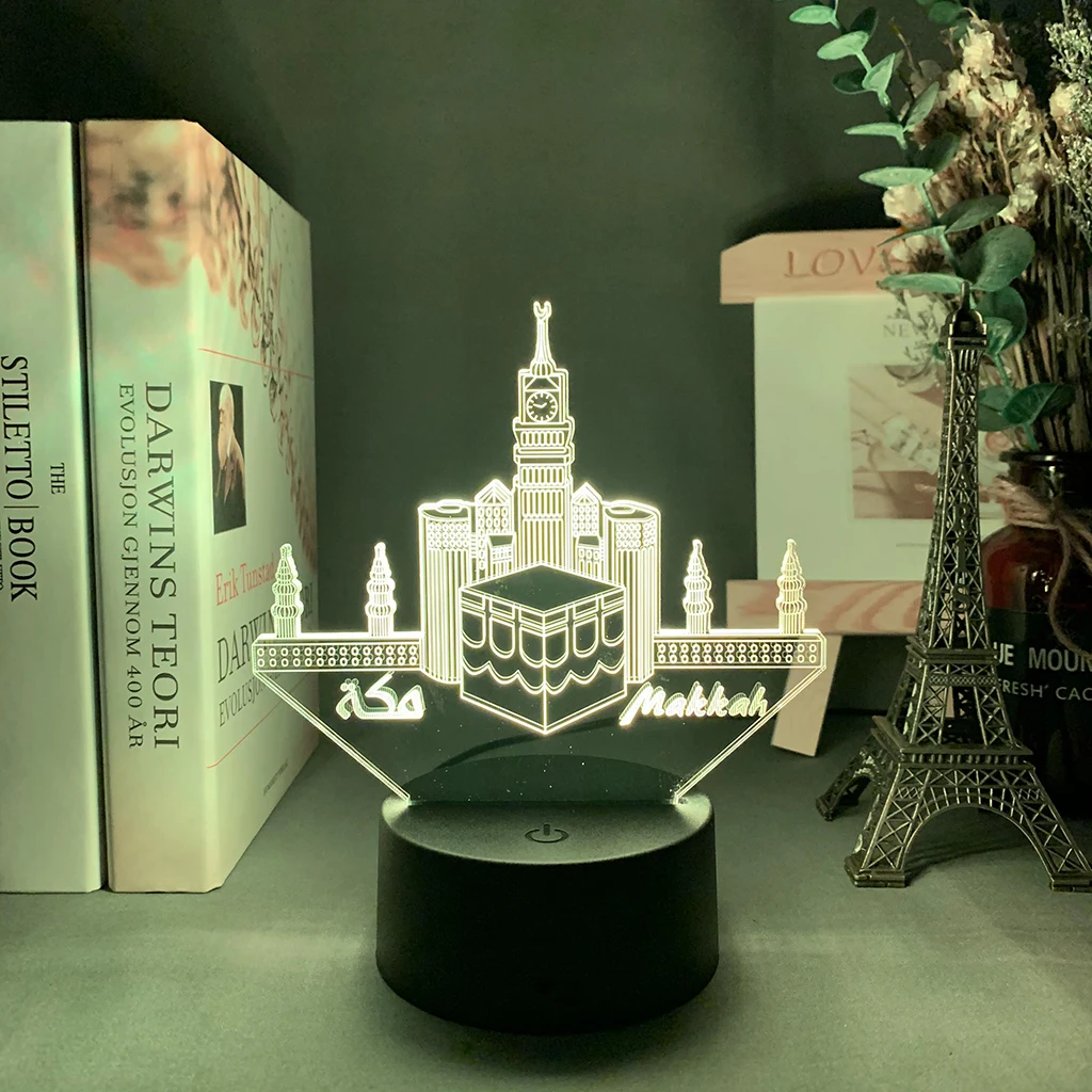 Модель мечети светодиодный ночсветильник 3D иллюзия меняющий цвет ночсветильник для спальни уникальный подарок для мусульман домашний декор настольная Ночная лампа