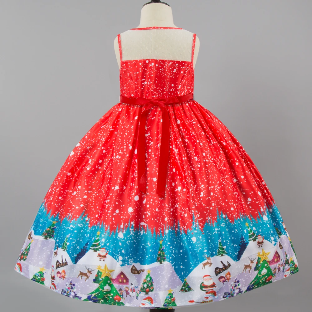 Рождественское красное платье для девочки для вечерние НКИ, детское свадебное платье с бантом, вечернее платье для выпускного, Детский костюм из тюлевой ткани для нового года