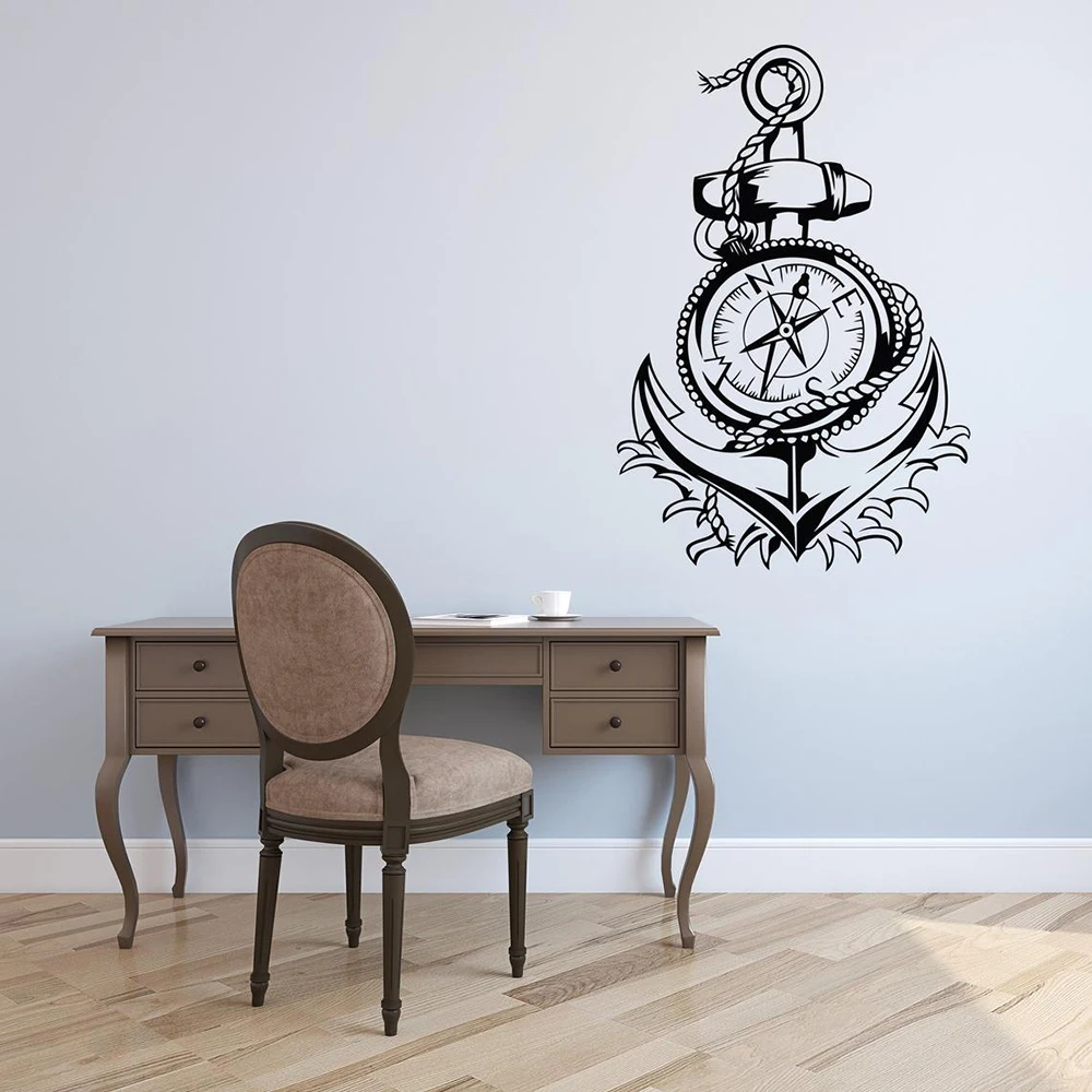 Якорь с компасом Настенная Наклейка Морской Декор с якорем компас Морской Настенная Наклейка Виниловая Наклейка Декор гостиной росписи C796
