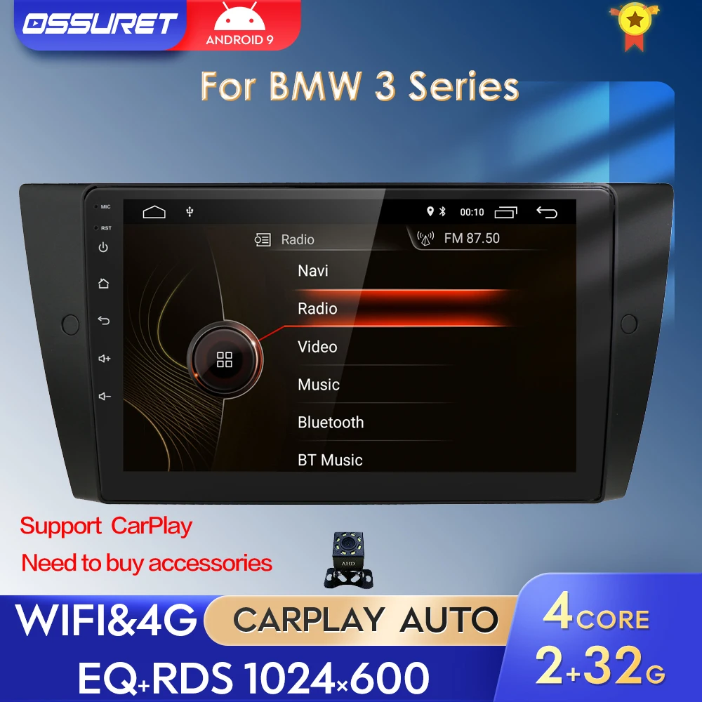 Автомобильный мультимедийный плеер Android 10, стерео система GPS для BMW E90 E91 E92 E93, 4G, Wi-Fi, FM, AM, радио, автомагнитола, Canbus 1024*600, CAM-IN