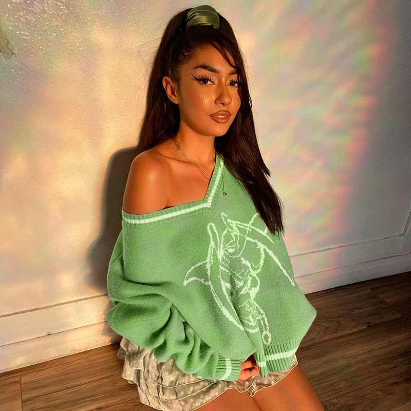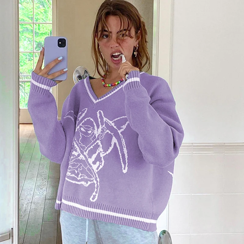 Свитер Женский вязаный в полоску, с V-образным вырезом