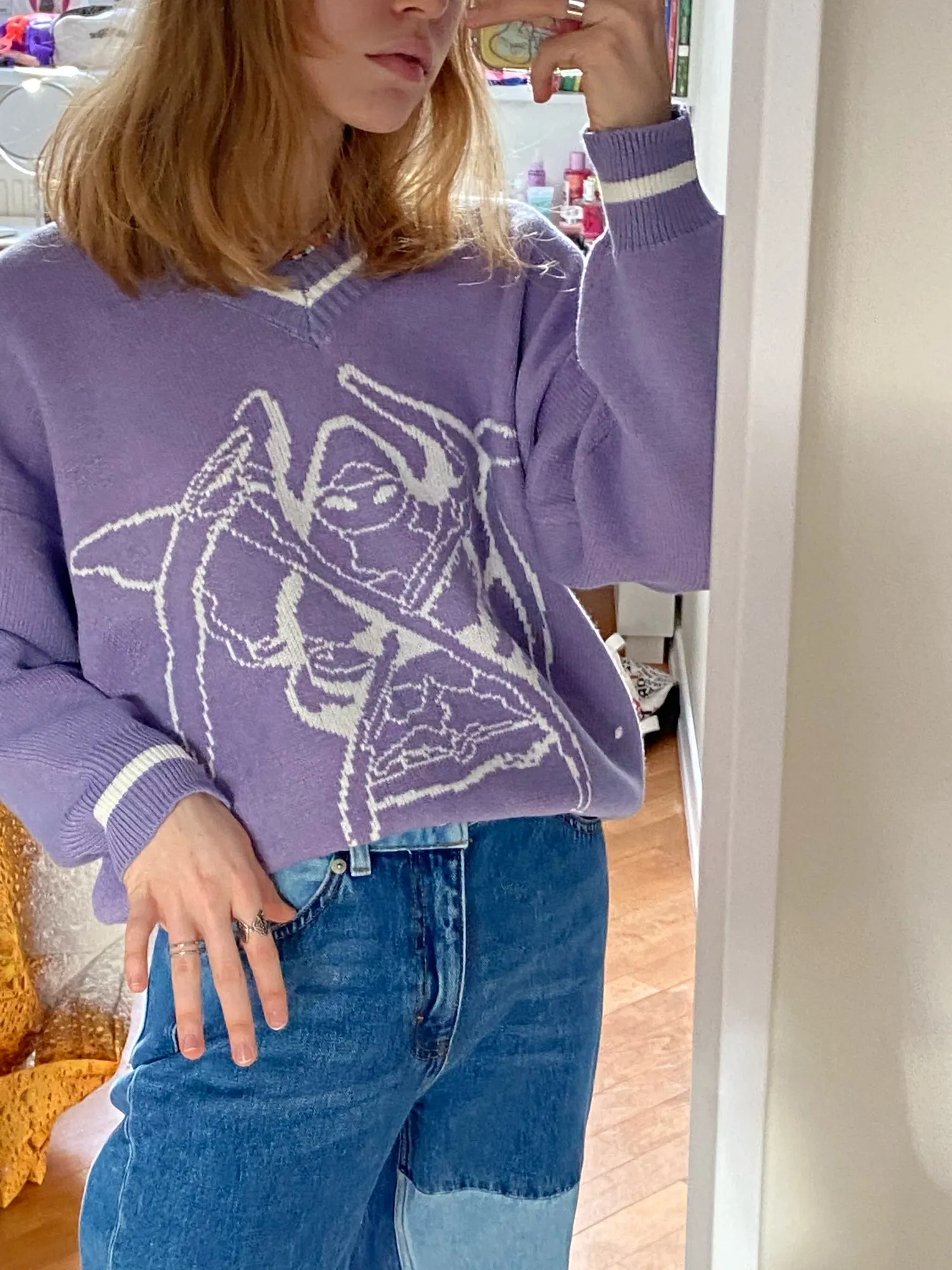 Этот свитер потрясающий! Очень мягкий и эластичный! Он выглядит как настоящая вещь на небесах, может подождать веб-сайт! Ангел Смерти немного меньше того, что выглядит на картинке, но это довольно точно. Для большого размера я заказал большой (я XS), и он подходит хорошо! Они садятся в сушилку :( черный свитер не очень быстро раскрашивается!