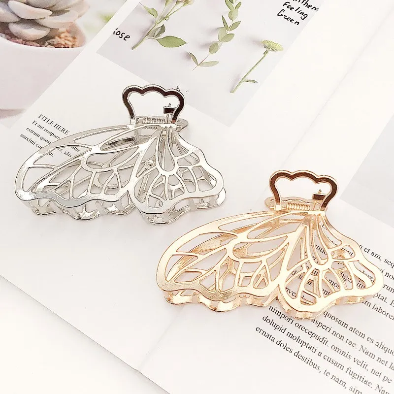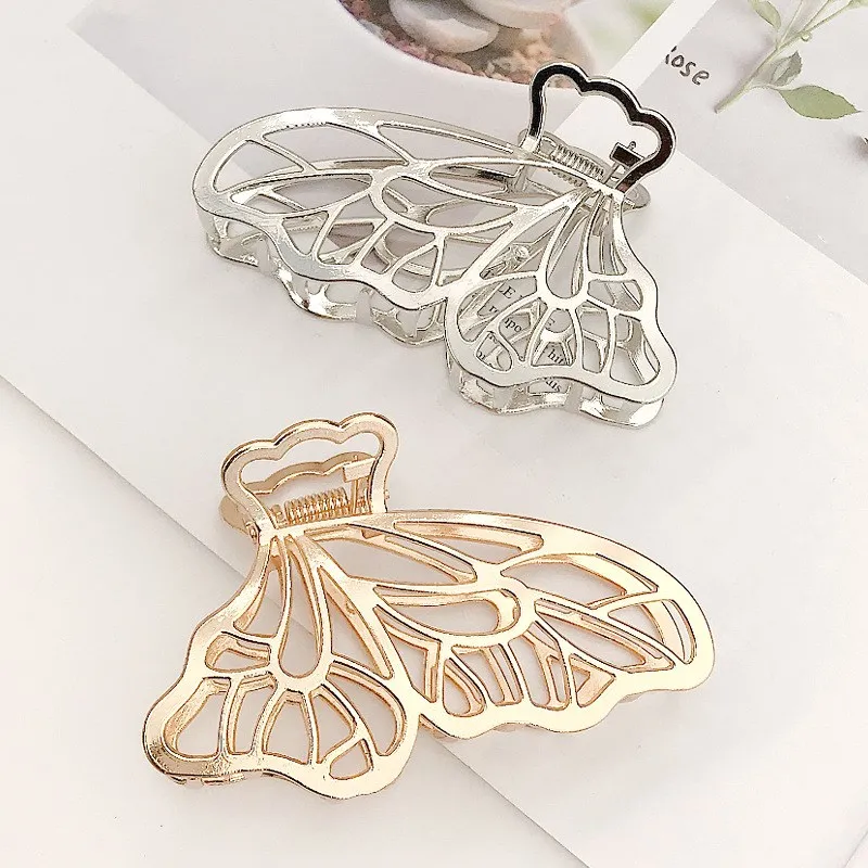 Зажимы для волос, для женщин и девочек, большого размера, геометрические, металлические, в форме бабочки, однотонные, аксессуары для волос
