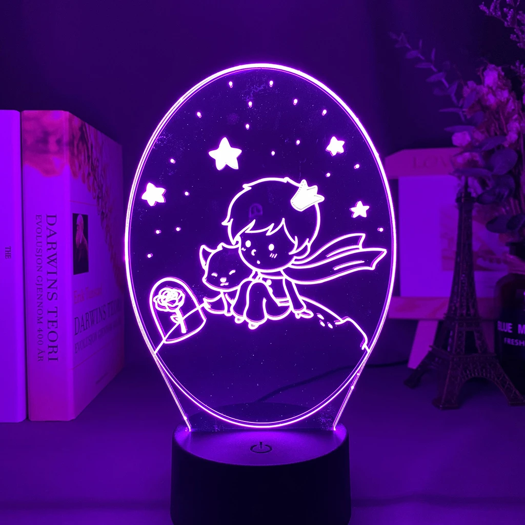 Детский ночсветильник The Little Prince, декоративсветильник лампа для спальни, 7 цветов, с изменением цвета, питание от Usb, питание от аккумулятора, детский ночсветильник