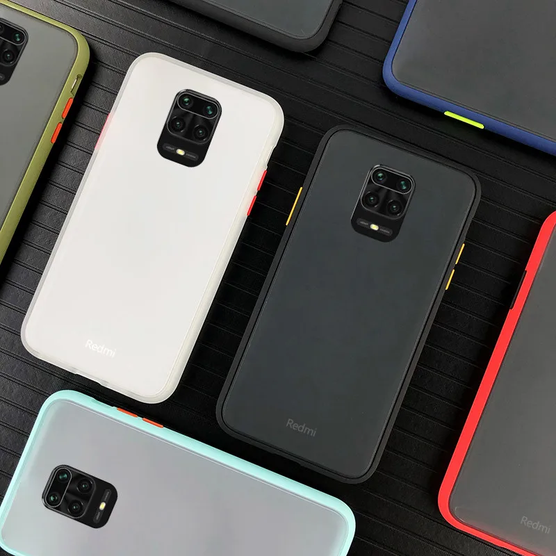 Чехол для Xiaomi Redmi Note 9S, противоударный, цветной, ТПУ, прозрачный, с рамкой, матовый, жесткий, из поликарбоната