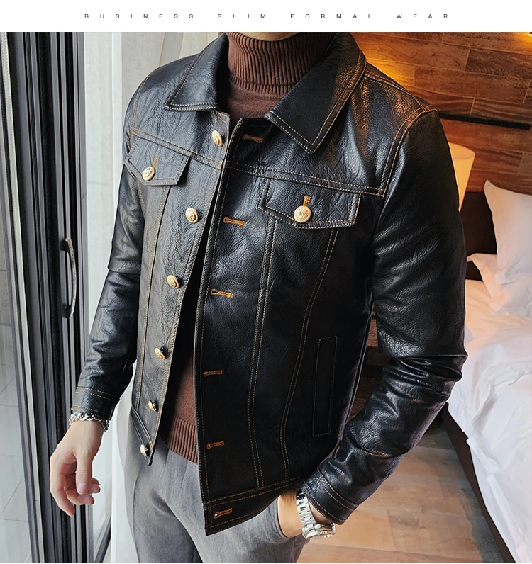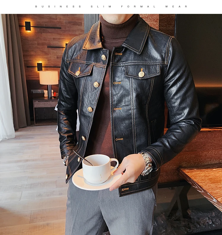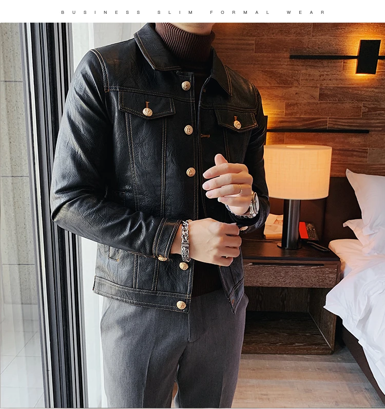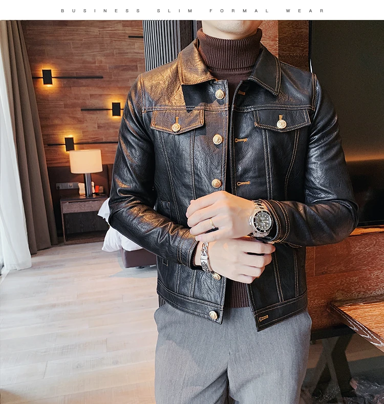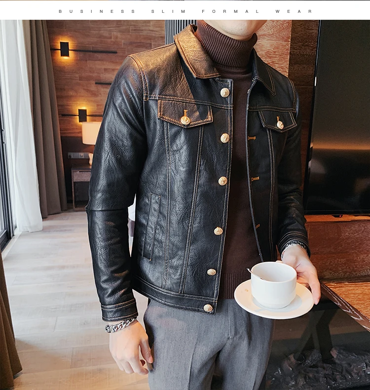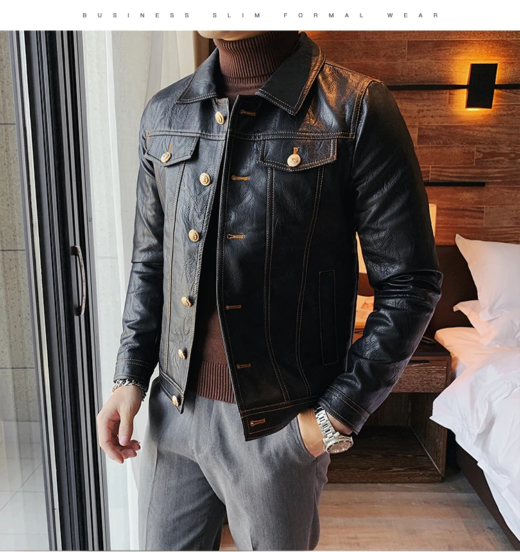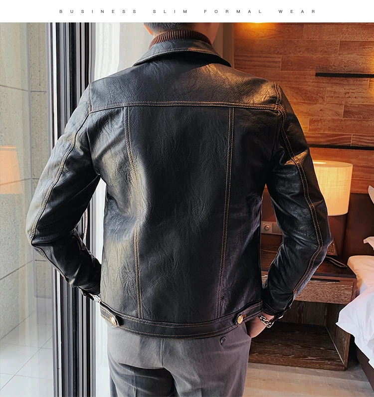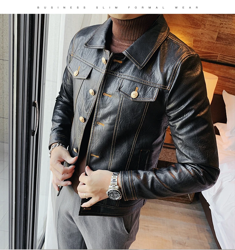 Кожаная куртка мужская черная кожаная куртка повседневная Корейская стильная мотоциклетная куртка однобортная кожаная куртка с лацканами