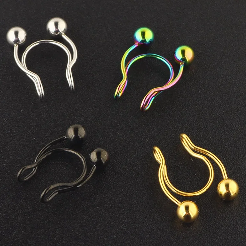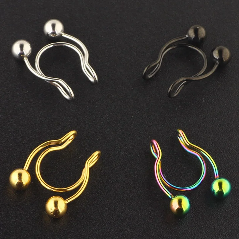 Кольцо для имитации пирсинга носа, кольца в нос из нержавеющей стал...