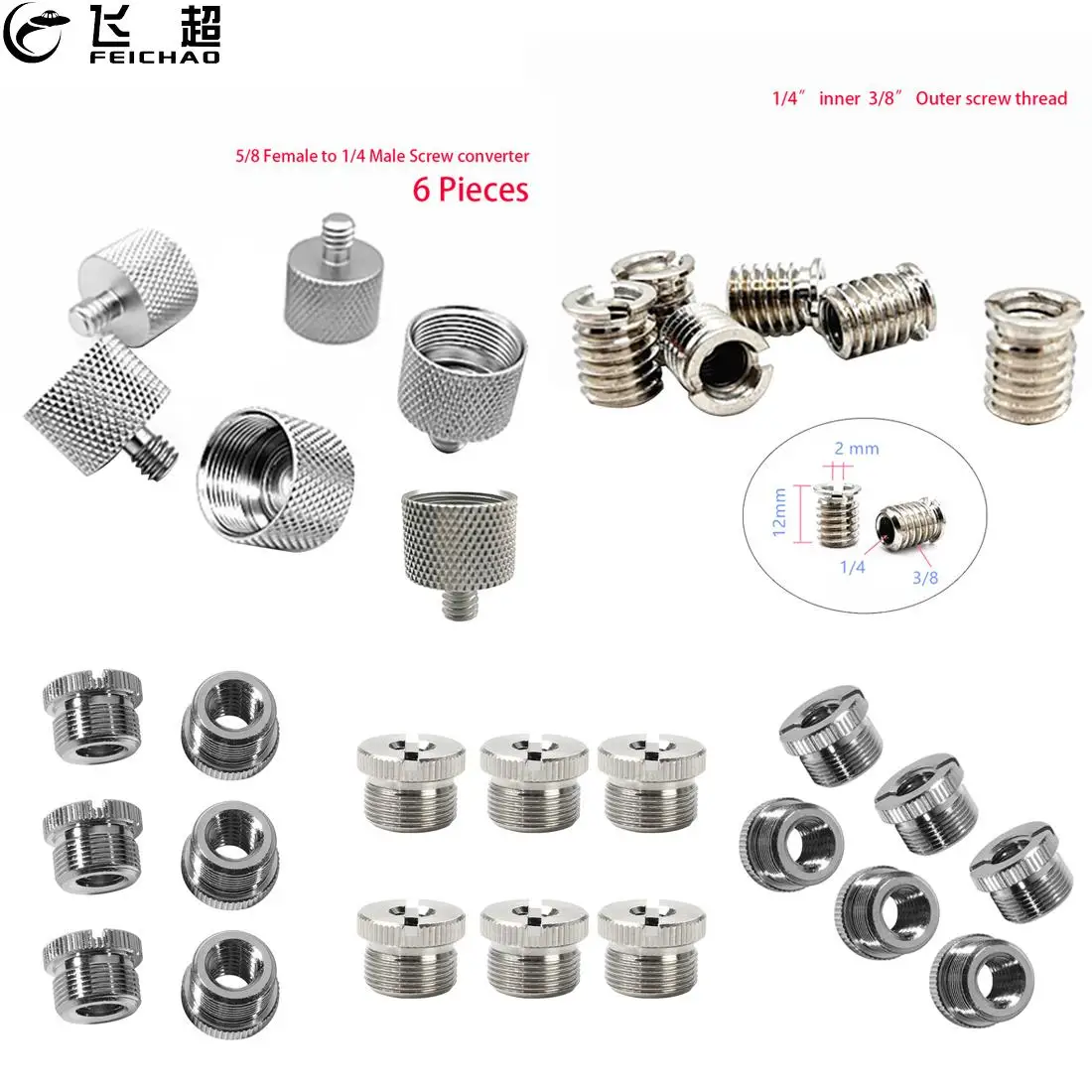 6 шт. 5/8 "женский тонкий Винт с резьбой на 1/4" Мужской адаптер винты для микрофона