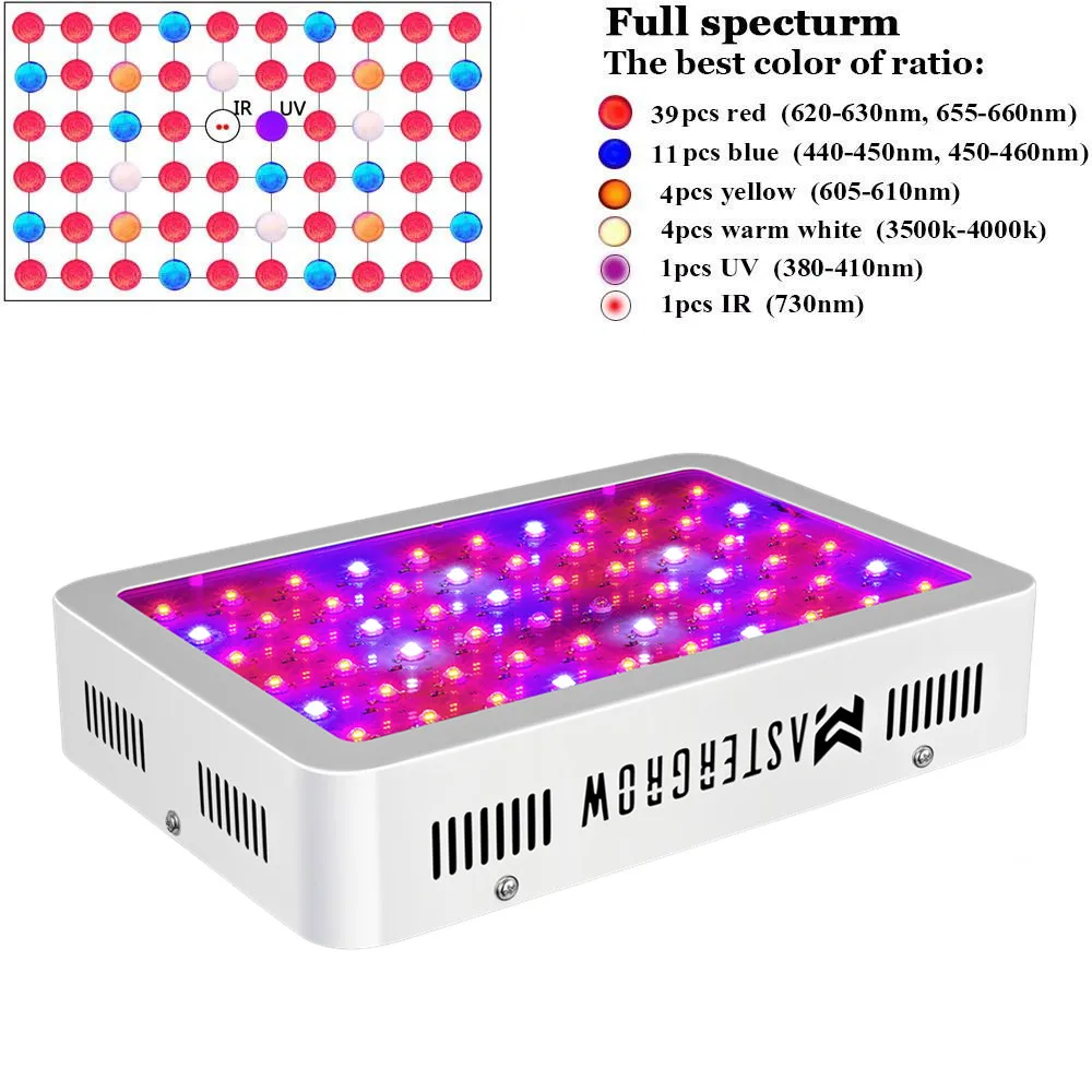 Полный спектр для вегетативной и цветущей стадии: 430 ~ 440nm, 450 ~ 475nm, 620 ~ 630nm, 650 ~ 670nm, белый, IR(730nm)