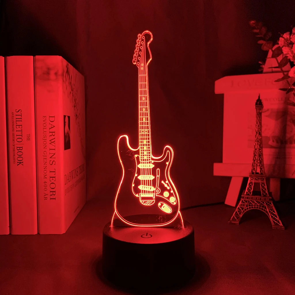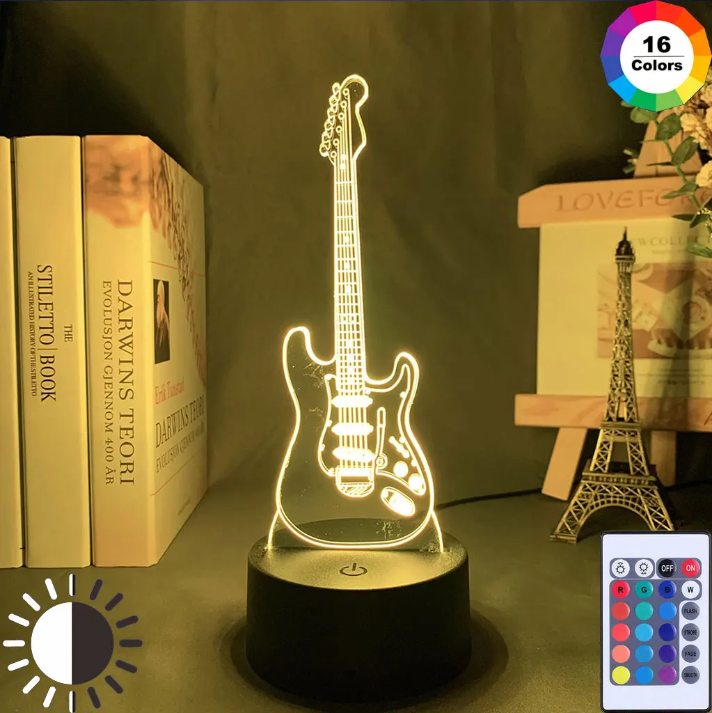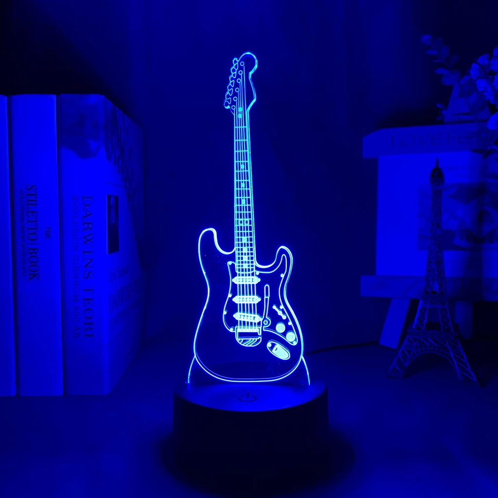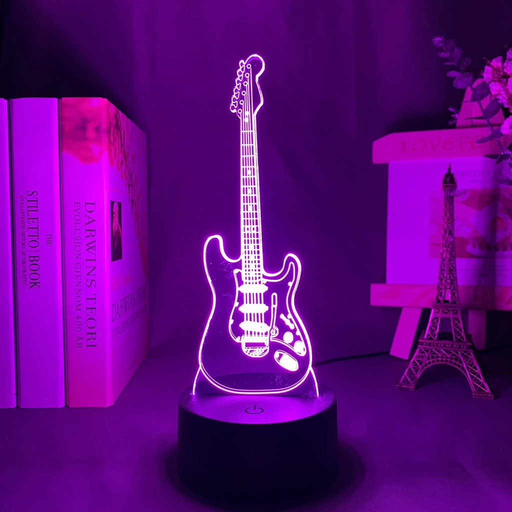 Музыкальный инструмент, детский ночник, светодиод, 7 цветов, сменная спальня, Декор Светильник, гитара, подарок для детей, для девочек, настольная Usb 3D лампа, бас